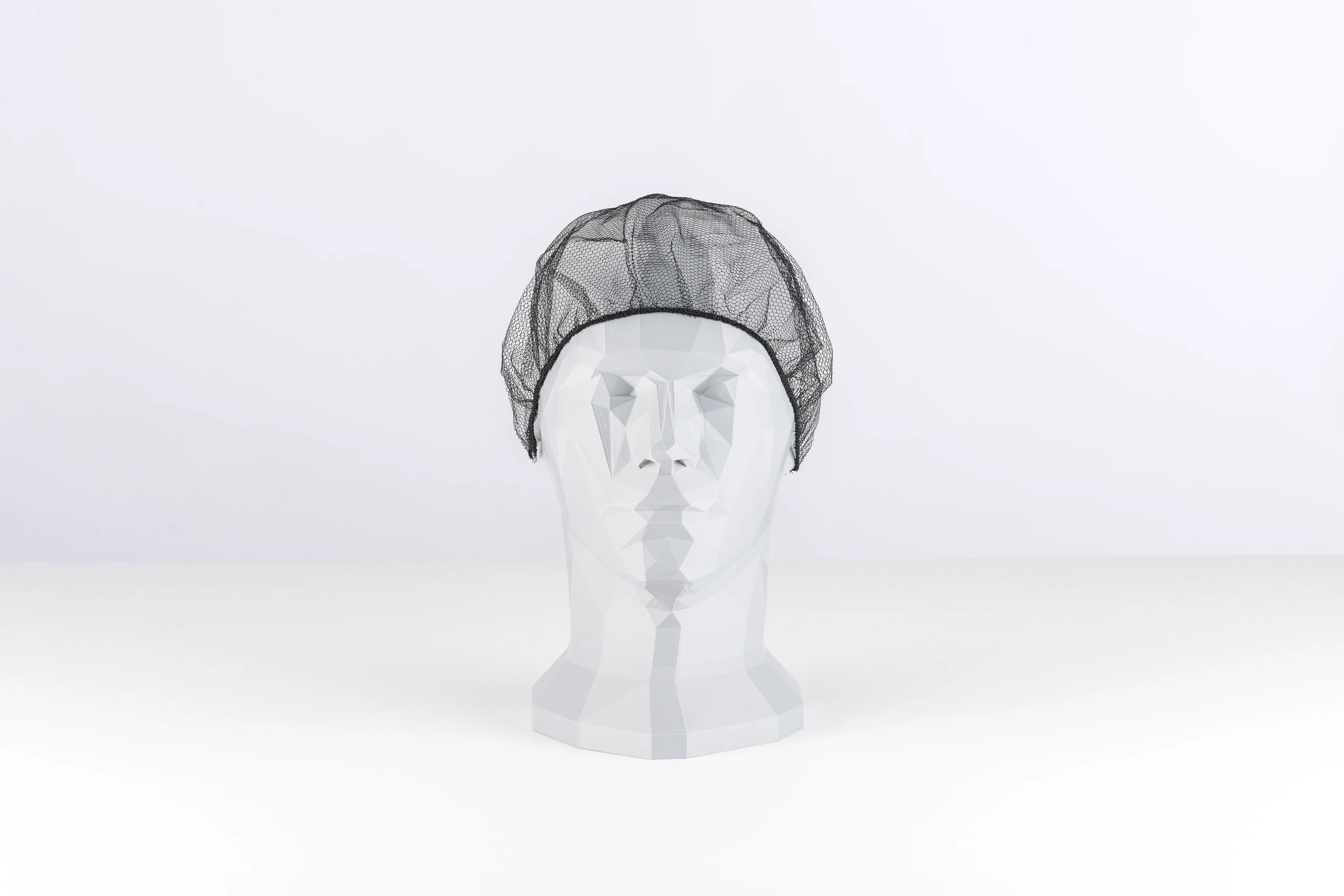 Black hairnet cap. Made of polyester and latex-free. Its lightweight design allows hair to breathe.