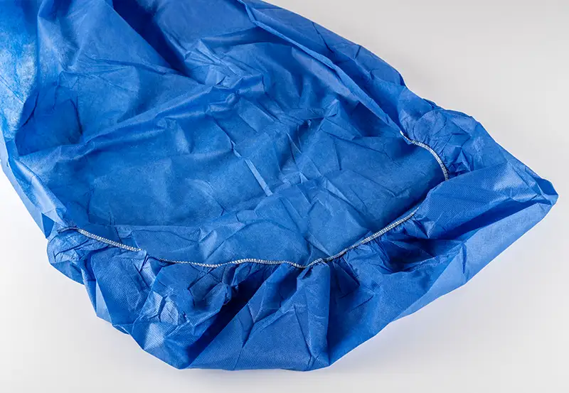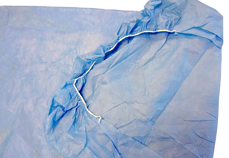 Disposable fitted sheet designed to prevent direct contact between the user and the examination table. Made of non-woven polypropylene (PP) or SMS fabric, with elastic at the ends for a snug fit. Available in white, sky blue, dark blue, or green, and in various sizes to fit different examination tables or beds. A white, laminated fitted sheet is also available, offering extra protection against liquids.