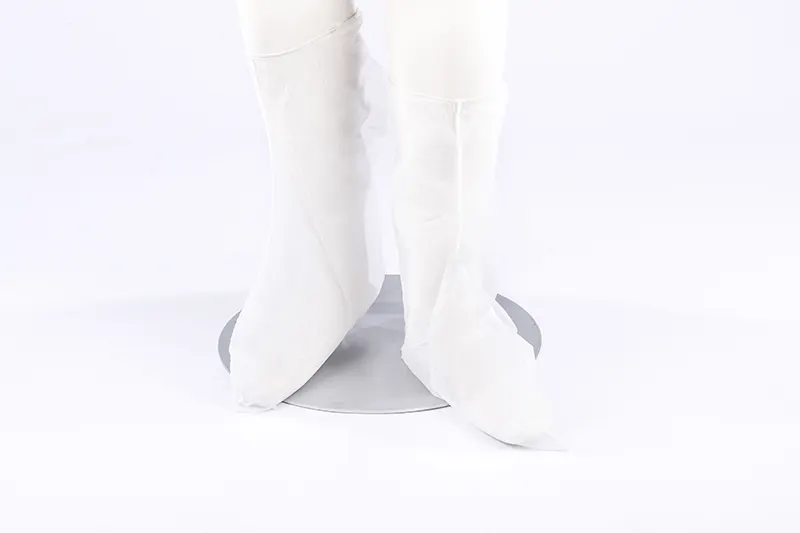 Disposable socks for boots (foot covers), made of non-woven polypropylene (PP) fabric, with an elastic band at the top for a better fit. Available in white.