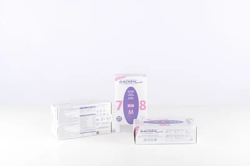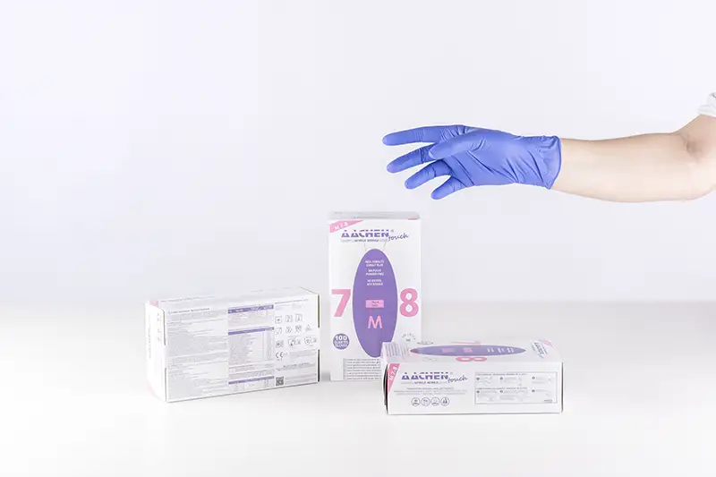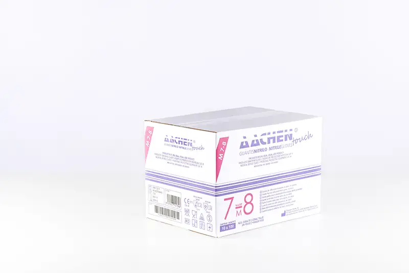 Powder-free, non-sterile nitrile gloves, AACHEN TOUCH brand.