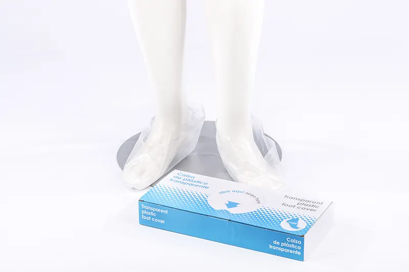 Disposable transparent shoe cover or sock, made of polyethylene (PE), one size fits all.
